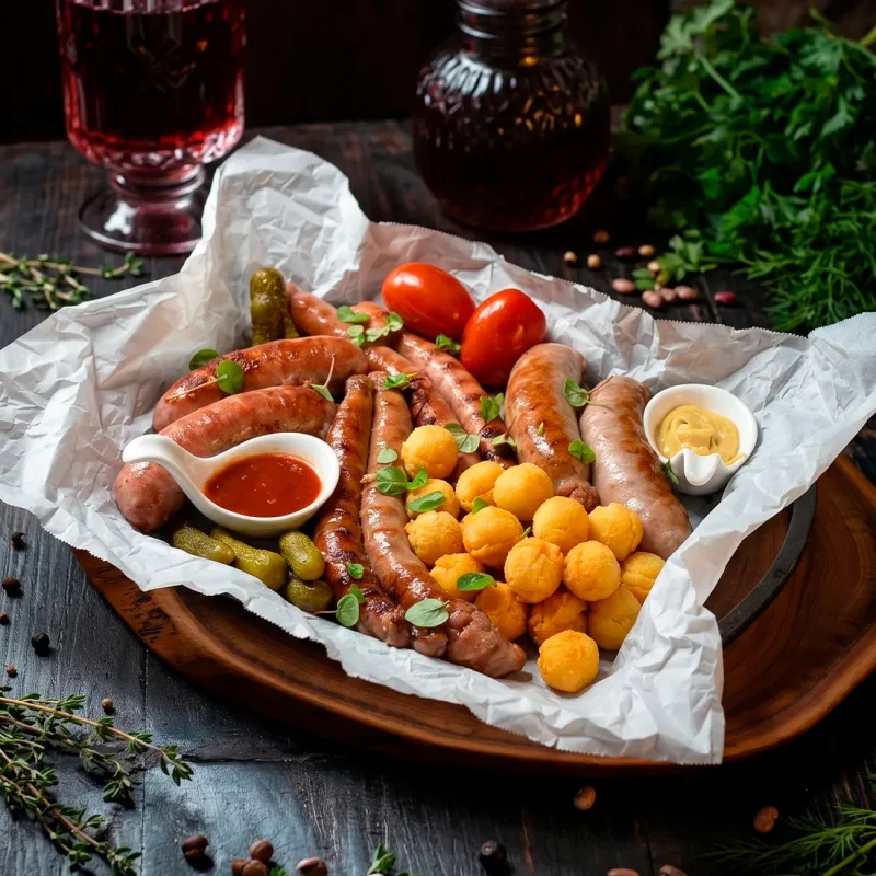 Ассорти колбасок с картофельными шариками Подборка колбасок с хрустящими картофельными шариками 6990 ₸