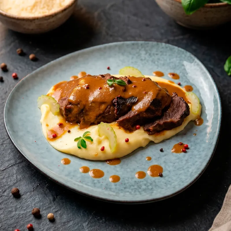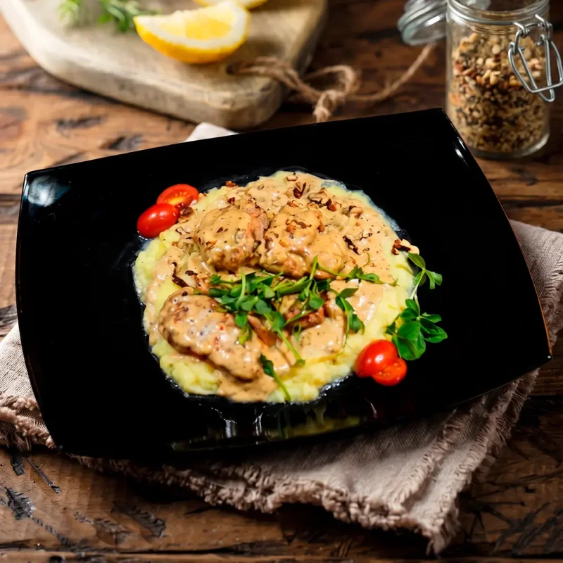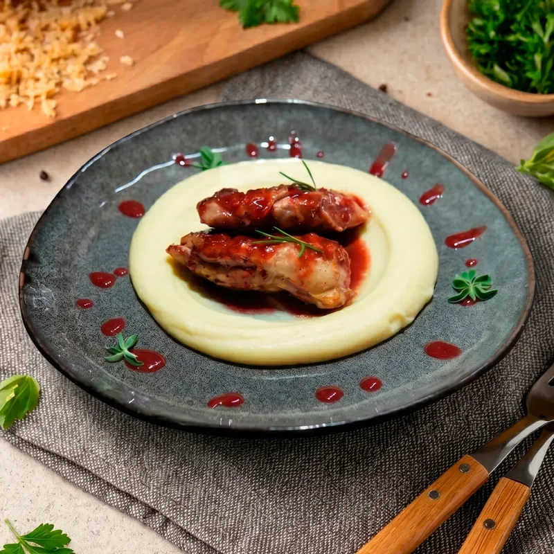 Щёчки телятины в мясном соусе с картофельным пюре Медленно томлёные щёчки с глубоким мясным вкусом и кремовым картофельным пюре 3990 ₸