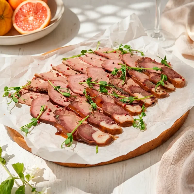 Мясная нарезка «Смокер деликатес» Щедрая подборка копчёных мясных деликатесов: казы, язык, брискет и вырезка конины. 8990 ₸