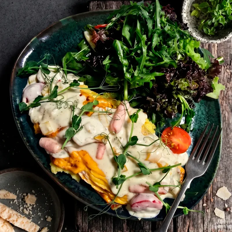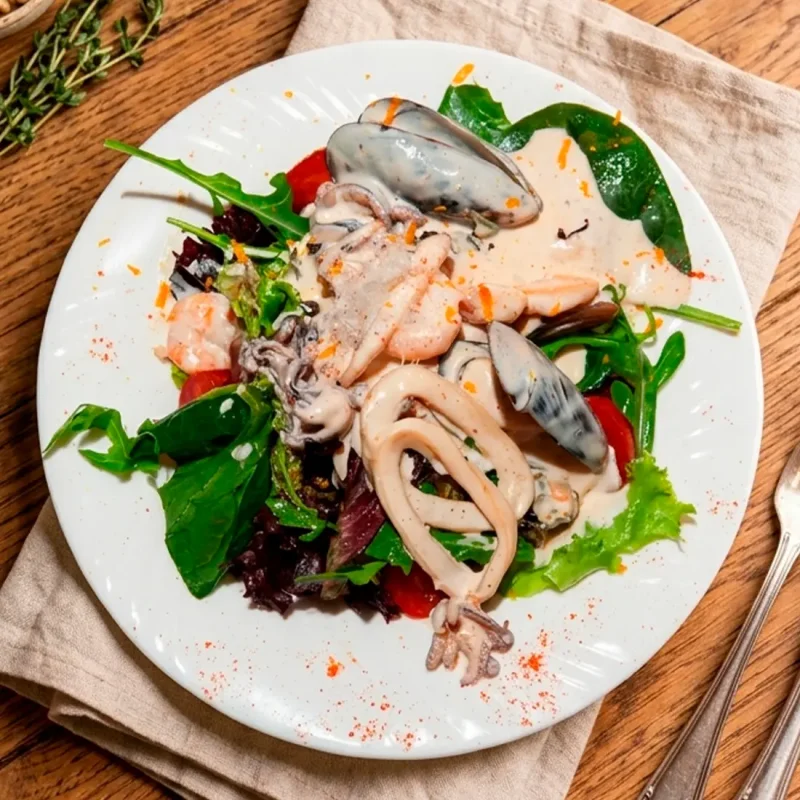 Дорада в сливочном соусе Нежная рыба с мягким сливочным соусом, подаётся с дольками лимона и свежим салатом в лимонно-горчичной заправке 5490 ₸